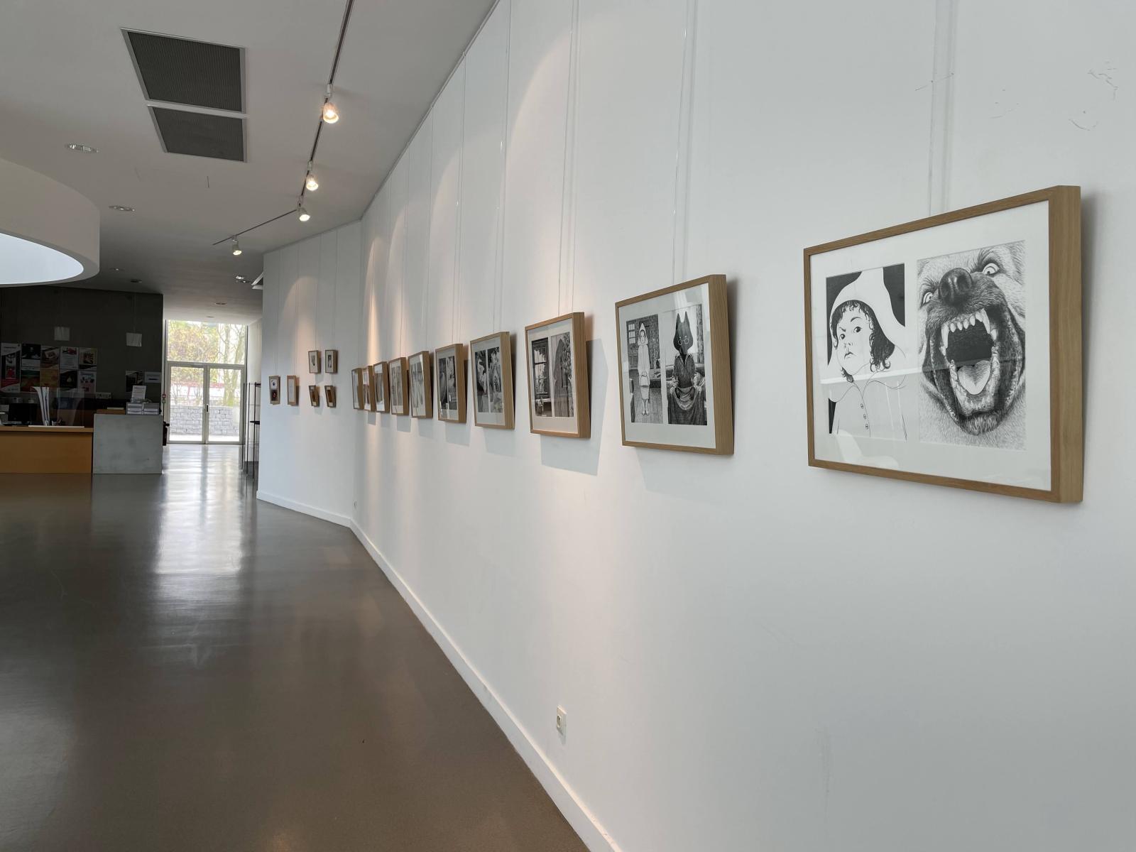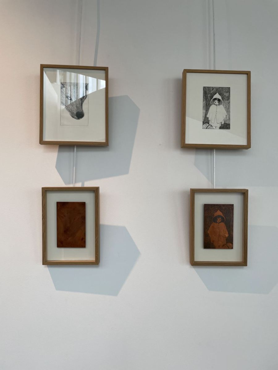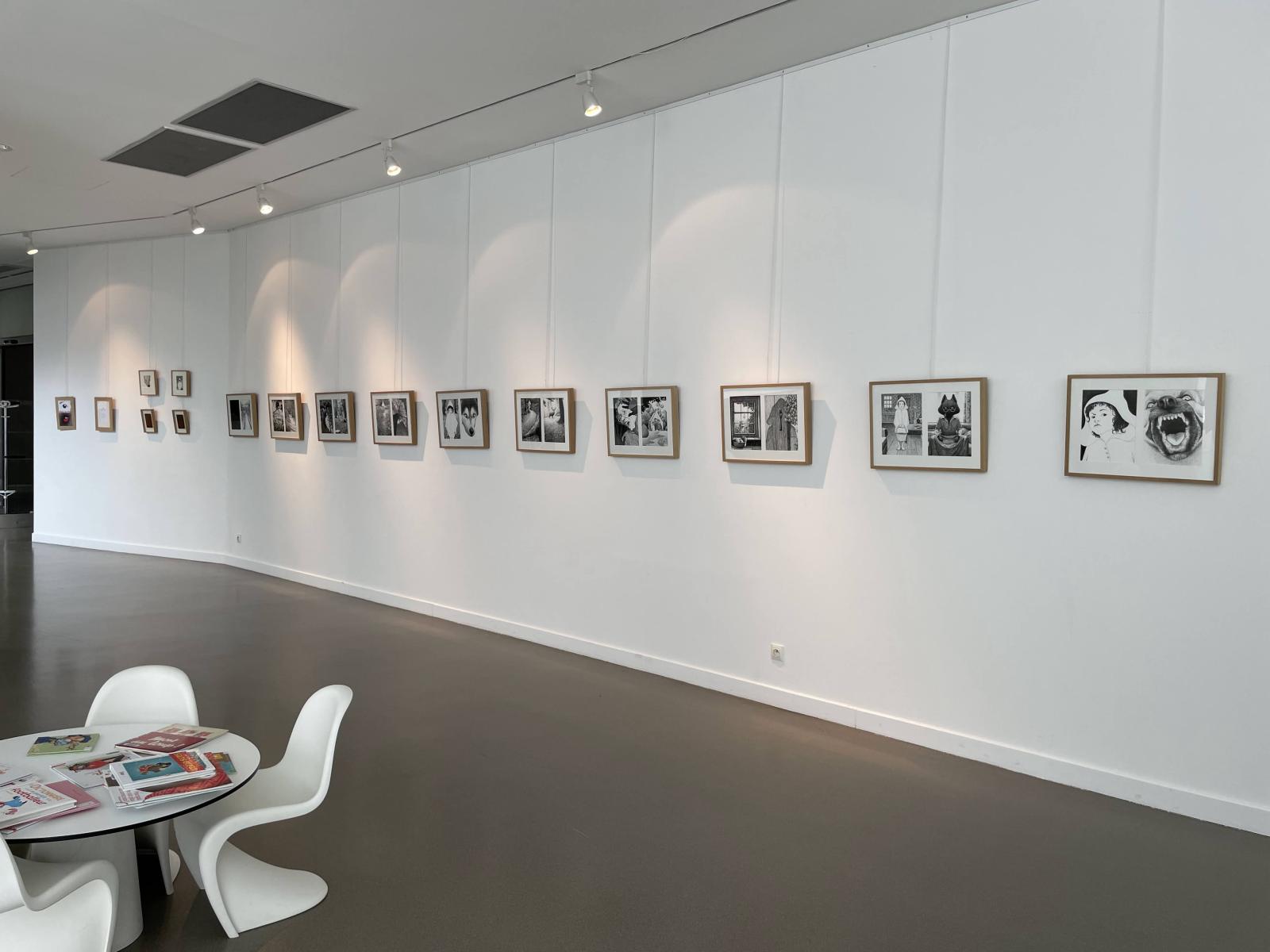 Quelques photos des illustrations originales encadrées issues de l’exposition LE PETIT CHAPERON ROUGE en location :
