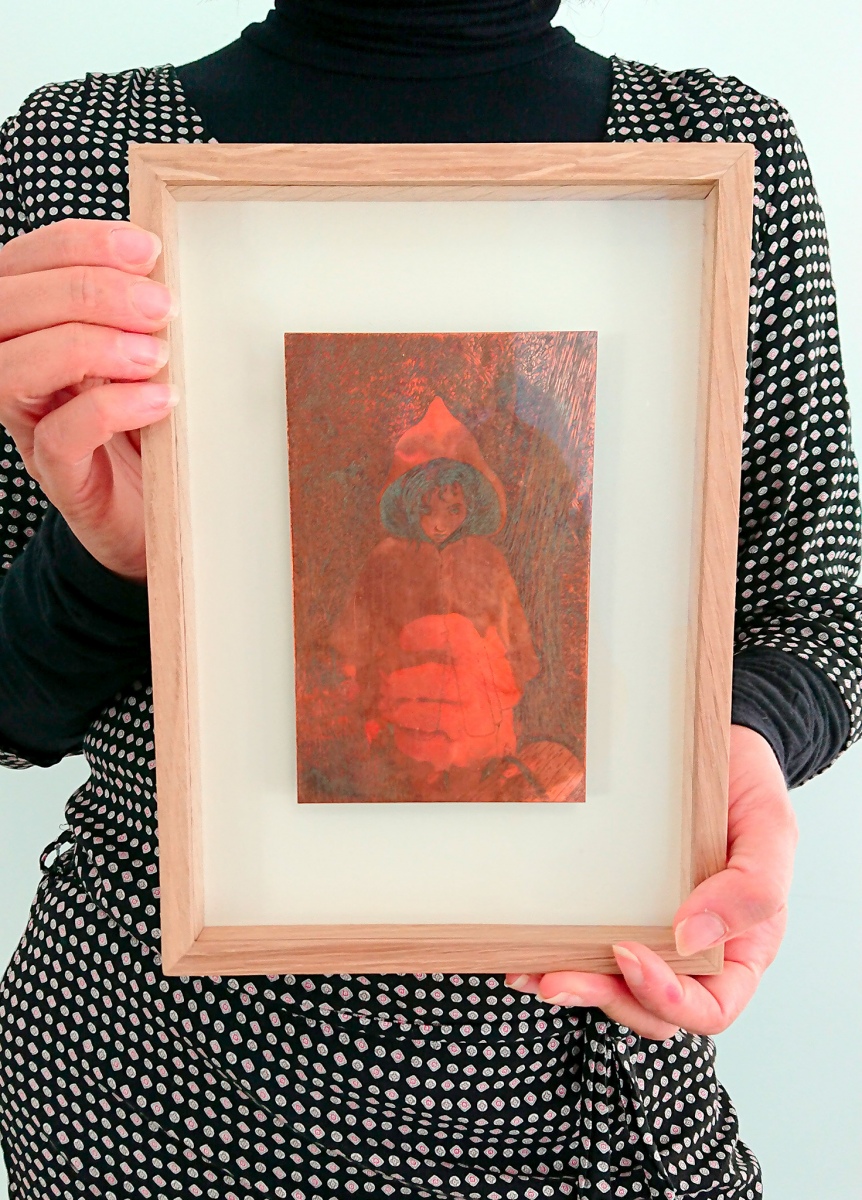 - 2 cadres en chêne clair brut contenant chacun la plaque de cuivre de la gravure ( format 18 x 25 cm ) avec crochet