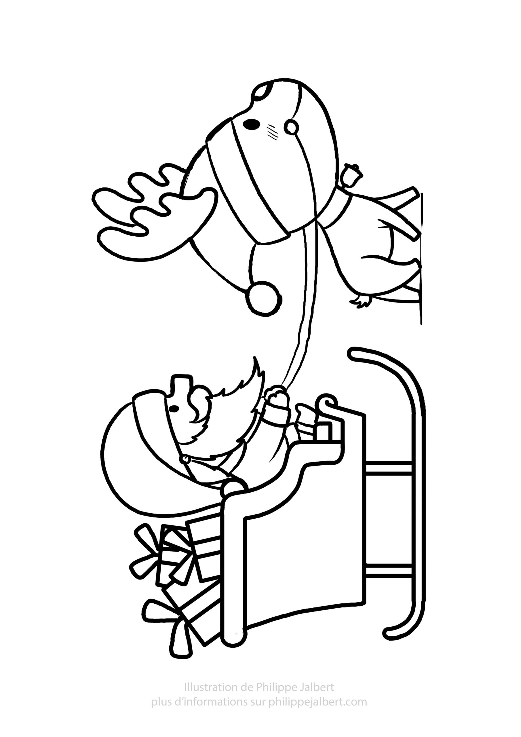Téléchargez le modèle à imprimer pour dessiner et colorier le traineau du père Noël